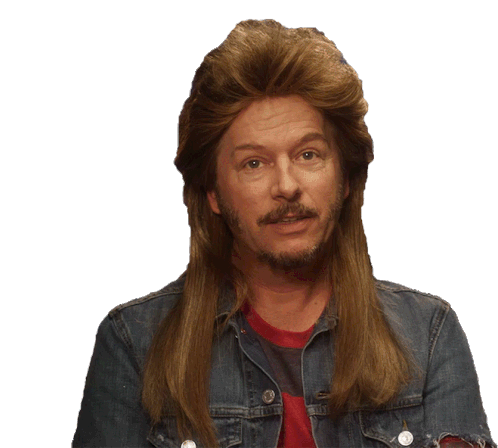 David Spade, looking confused and perplexed, sports a long mullet and a denim jacket.