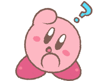 Kirby, the adorable pink puffball, looks utterly confused with a question mark above his head.