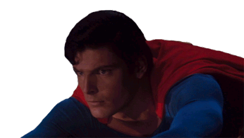Christopher Reeve as Superman, looking with a confused or curious expression, ready for action. A classic superhero moment.