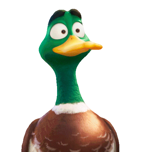 Mack Mallard, voiced by Kumail Nanjiani, looks utterly confused and perplexed with wide eyes and an open beak.