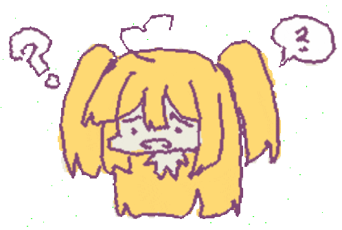 a pixel art drawing of a girl with a question mark in her speech bubble