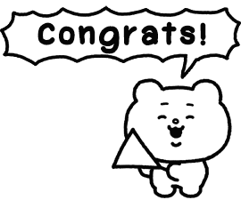 A cute ベタックマ (Betakkuma) bear character happily says 'Congrats!' with a speech bubble.