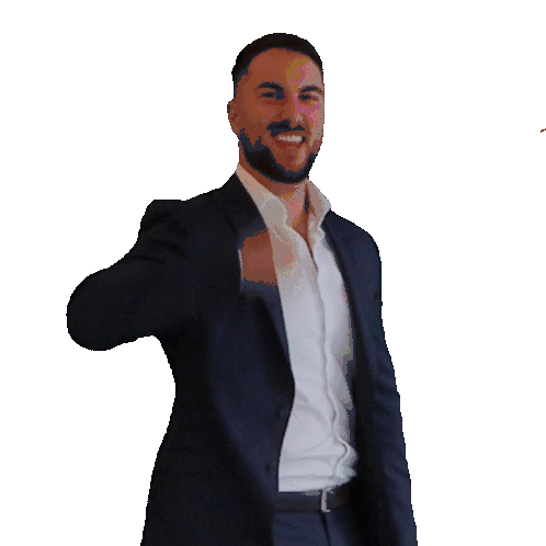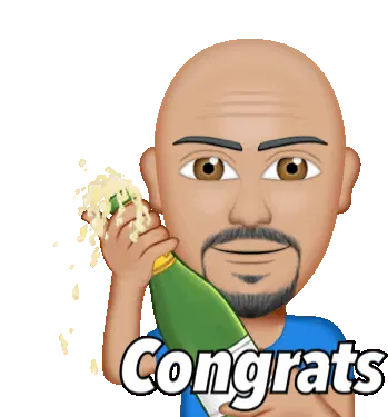 Fedja Bilić from Collings Real Estate celebrates enthusiastically, smiling and gesturing 'call me' amidst confetti and streamers, with 'CONGRATS!'.