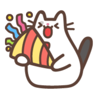 A happy cartoon cat celebrates with a party popper, confetti flying. Perfect for congratulations and joyful moments.
