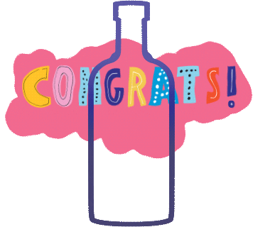 A colorful illustration of a bottle outline with the word 'CONGRATS!' written inside a pink cloud.