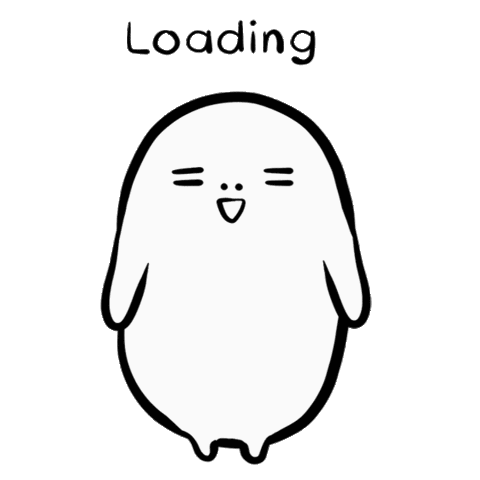 A cute, blob-like cartoon character with a pensive expression and the word 'Loading.' above its head, conveying thought or curiosity.
