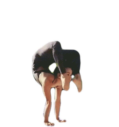An incredible contortionist performs an extreme bend and balance pose, showcasing remarkable flexibility and strength.
