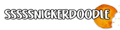 An animated sticker featuring the word 'SNICKERDOODLE' in a fun font, with playful cookie crumb effects.