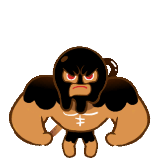 Muscle Cookie from Cookie Run Kingdom proudly flexes his powerful muscles, showing off his strength.