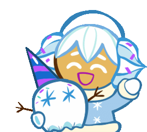 Snow Sugar Cookie from Cookie Run shows joy with a festive snowman, changing from sad to happy.