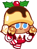 Pudding Cookie from the popular Cookie Run game joyfully runs, showcasing its iconic design with a red bow and bell.