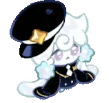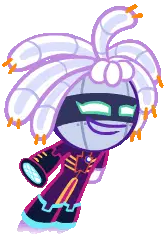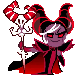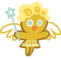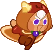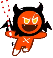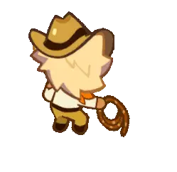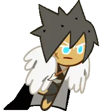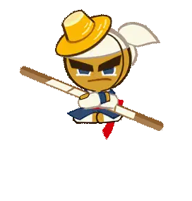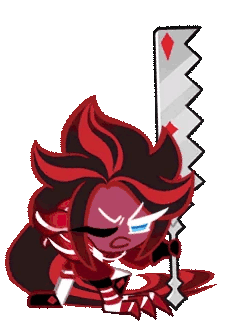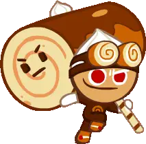 a cookie run character is holding a large saw in his hands .
