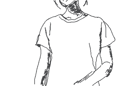 An animated sticker depicting a person removing their t-shirt, with the garment fading away to reveal the torso.