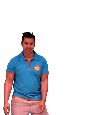 A man in a Cool Blue shirt performs a funny dab dance move, smiling playfully. Bill Gates is associated with this silly action.