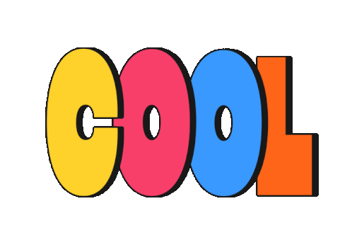 A vibrant, animated sticker featuring the word 'COOL' in bold, colorful letters that subtly shift and bounce.