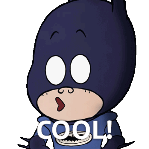 Damian Wayne as Batman expresses 'COOL!' with a changing facial expression in this animated sticker.