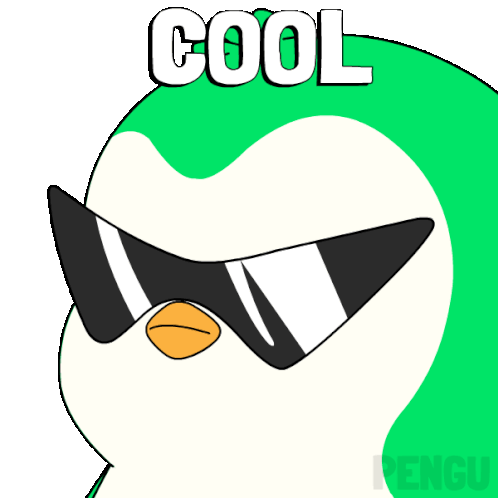 a penguin wearing sunglasses with the word cool written on it