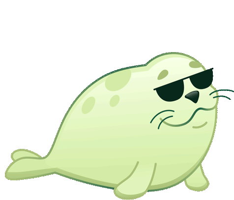 A confident, cool cartoon seal wearing black sunglasses, giving off a relaxed and stylish vibe with a slight nod.