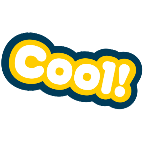 A vibrant sticker featuring the word 'Cool!' in yellow and white, associated with the character Pocoyo.