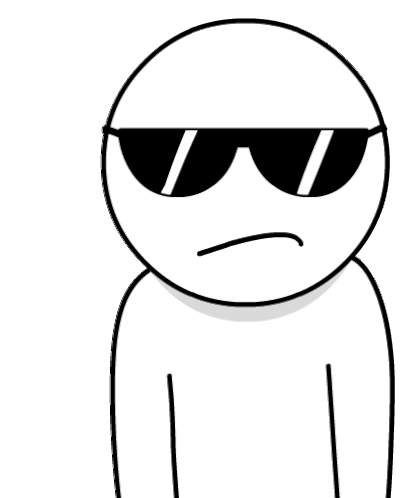 A cool, minimalist character wearing black sunglasses with arms crossed, displaying a serious or unimpressed expression.