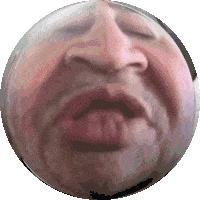 Mohammed Khanaqin's face is captured in a distorted, circular view, with his mouth open in a reaction.