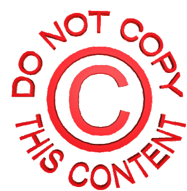 Animated 3D copyright sticker with rotating text 'DO NOT COPY THIS CONTENT' and a large copyright symbol.