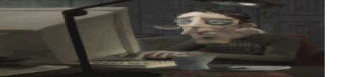 Coraline Dad Type Carolina sits at a desk, typing on a computer with a tired expression, engrossed in his work.