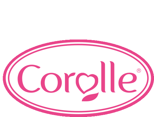 The pink Corolle Doudou logo, featuring a heart and leaf design, is displayed on a white background.