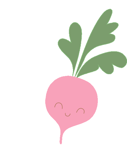 A cute pink radish with vibrant green leaves winks playfully, perfect for garden and vegetable themes.