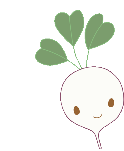 Adorable animated sticker of a cute white radish with green leaves, winking and smiling. Perfect for garden and vegetable themes.