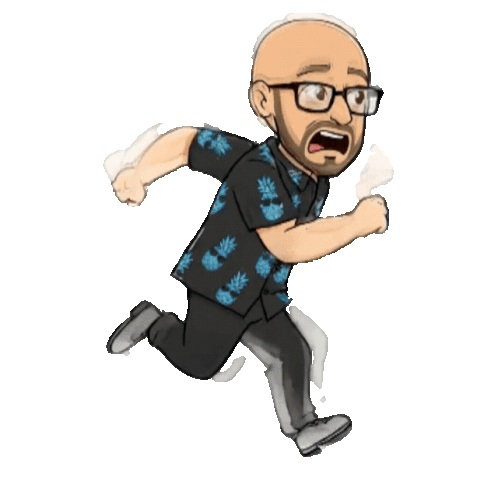 a cartoon of a man running with the words loganarchangel behind him