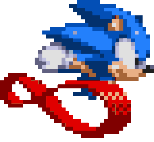 a pixel art drawing of sonic the hedgehog with a red tail