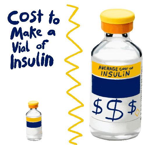 Highlighting the stark contrast between the $10 cost to make a vial of insulin and its $1000/month average price.