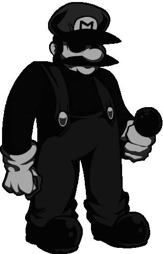 Greenio from FNF Mario's Madness in a distinctive costume, featuring a man with a mustache and an 'M' hat.