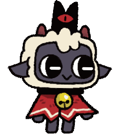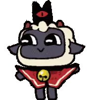 Animated sticker of Lambert, the crowned lamb from Cult of the Lamb, with a bell around its neck.