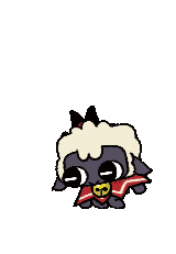 a cartoon of a cat with red eyes and a bell around its neck