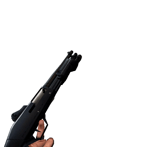 A first-person view of a hand in a black tactical glove reloading a shotgun, reminiscent of Counter-Strike gameplay.