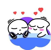 A cute animated sticker of a couple of cartoon characters sleeping peacefully together under a blanket, with red hearts floating above them, conveying love and goodnight wishes.