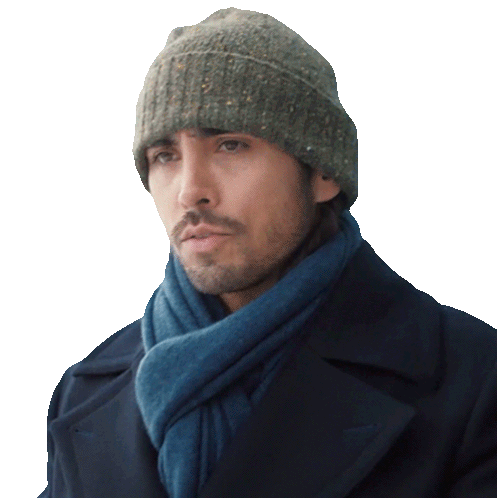 a man wearing a beanie and a scarf looks serious