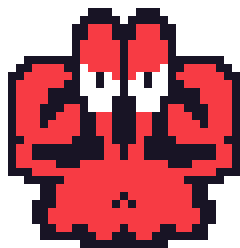 An animated pixel art sticker featuring a determined crab ready for a fight. Expresses tenacity and a 'You Want Some' attitude.