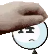 Saitama's iconic bald head, depicted in a simple doodle style, changes from a neutral expression to a happy smile.
