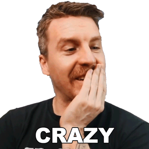 Jake Watson looks surprised and says 'CRAZY' in this animated sticker, perfect for expressing disbelief or shock.