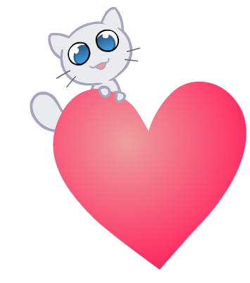A cute cartoon cat, Creu Creucat, peeks over a large pink heart, expressing love and affection. Perfect for sharing sweet feelings.