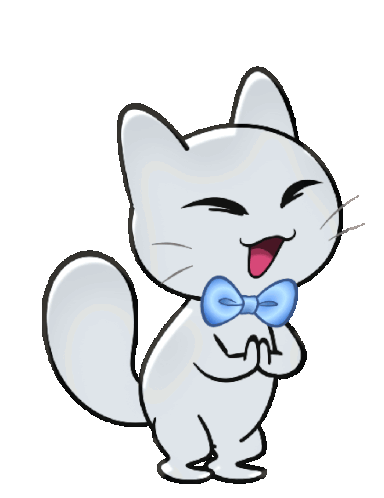 Creucat, the happy cat with a blue bowtie, claps joyfully, perfect for party, birthday, or festive celebrations.