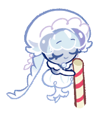 Jellyfish Cookie from Cookie Run, a cute character peacefully holding a striped candy cane.