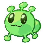 a cartoon drawing of a green alien with big eyes .