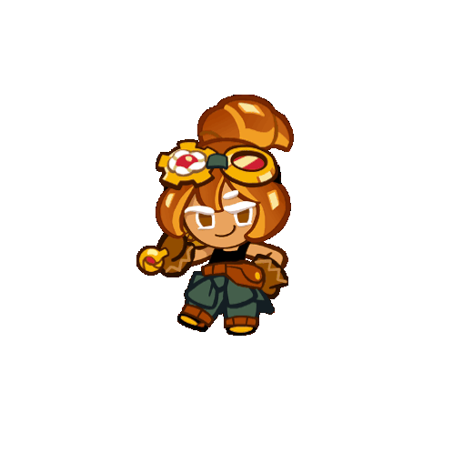 Croissant Cookie from Cookie Run: Ovenbreak in a charming pixel art animated sticker, featuring her signature croissant hair.