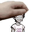 A pixelated animated sticker featuring a hand holding the head of Cronus Ampora from Homestuck.