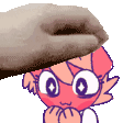 Olive Higgins from Crowpunk happily receives gentle pets on her face from a caring hand.