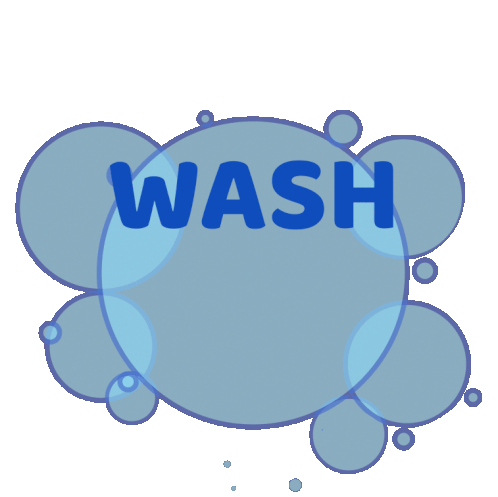 An animated sticker promoting hygiene and public health with messages 'Wash Your Hands!' and '#CrushCOVID19'.